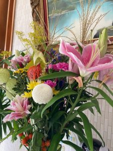 ■9月の花 2025.9.24 ●当院玄関に秋らしい花が飾られ、 来院される方をお迎えしております。 ●ケイトウ ●ピンクション ●キク ●リンドウ ●コダチイヌホウズキ ●トウゴマ ●フウセントウワタ ●オミナエシ ●ススキ ●ユリ 当院では華道の先生のご協力により、毎月玄関に季節の花を飾り 皆様をお迎えしています。